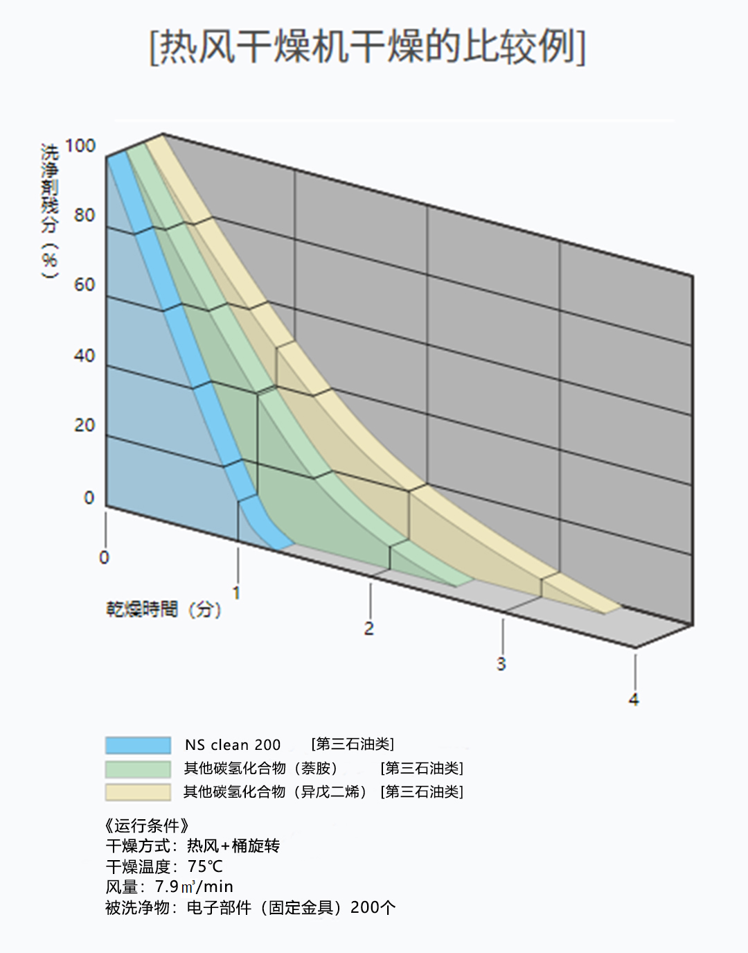 eneos清洗劑與各種清洗劑的清洗性比較; eneos清洗劑具有窄的沸點(diǎn)范圍,并且不包含難以干燥的重質(zhì)組分,因此它具有優(yōu)異的干燥性。eneos清洗劑是一種清洗劑具有高分離效率的清洗劑