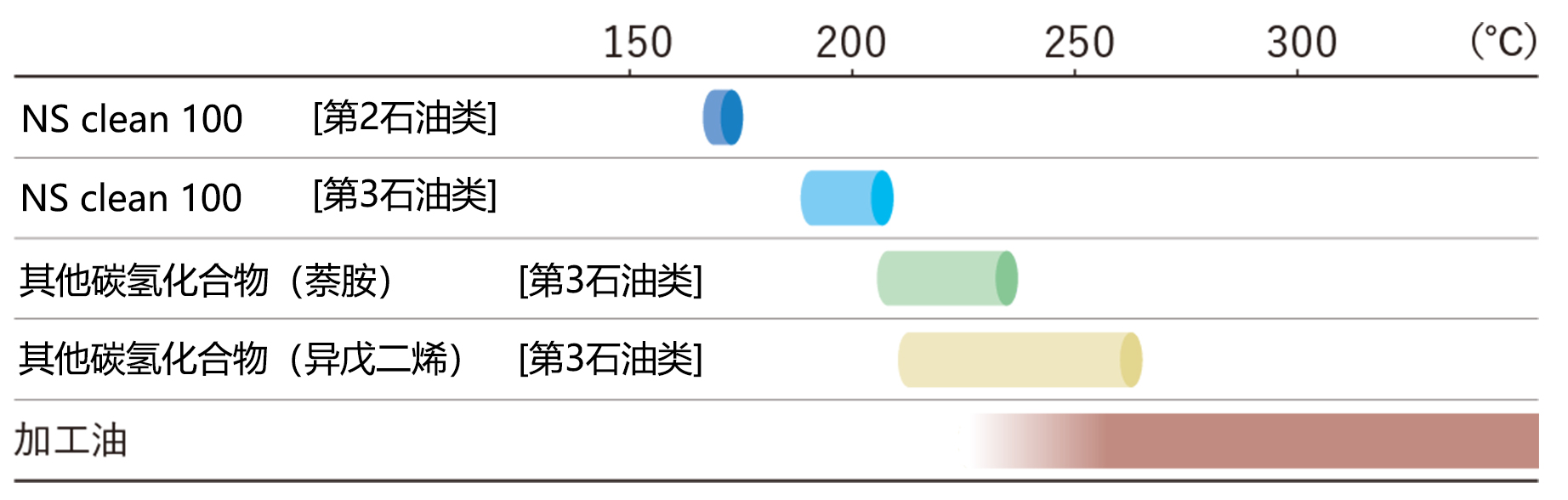 【圖】烴基清潔劑和典型加工油的沸程