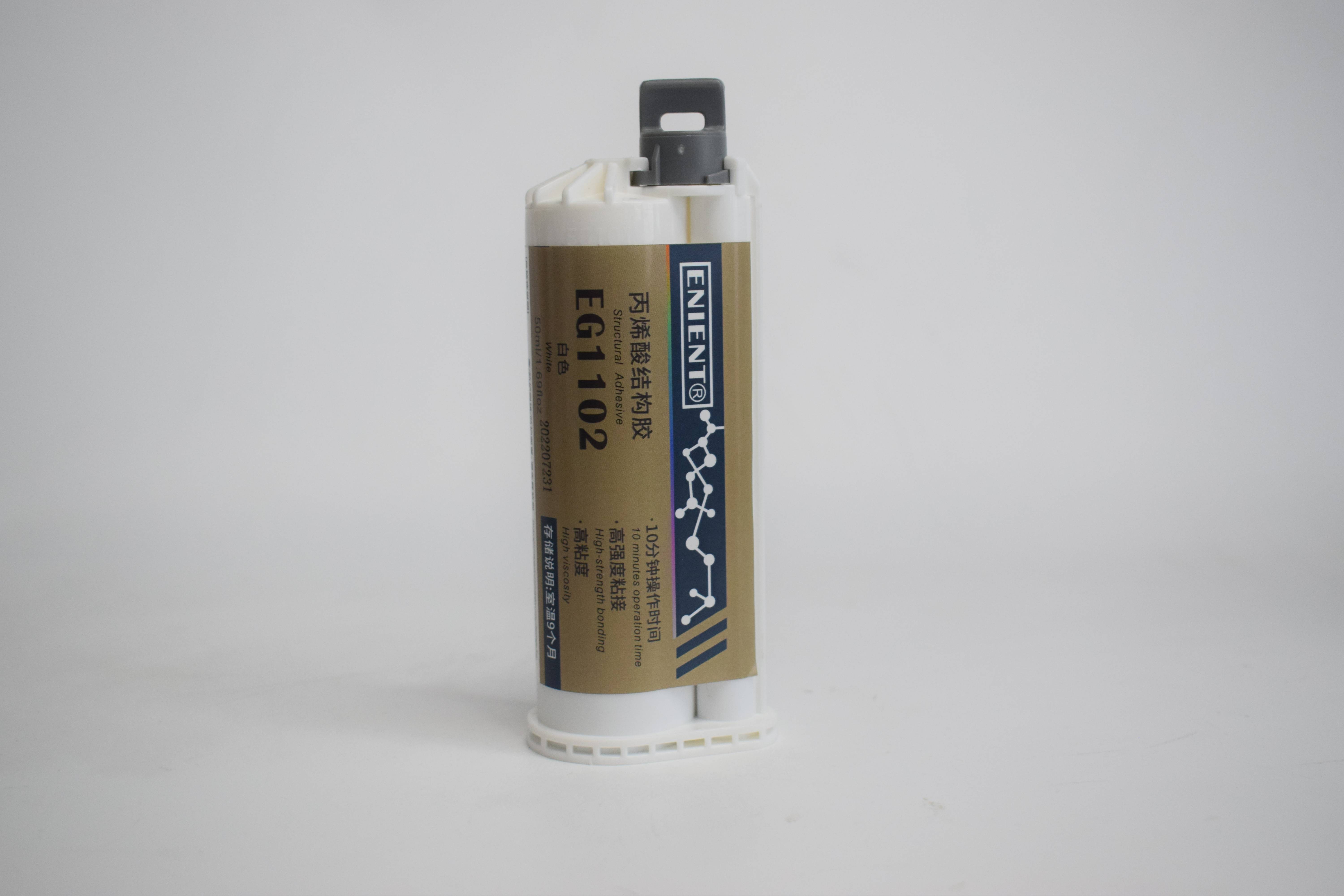 ENIENT開發(fā)了一系列丙烯酸結構膠EG1102系列,具有黑色,白色,透明色,綠色等多種顏色,對于ABS與各種材質(zhì)之間的粘接效果甚佳,可達破材級別。