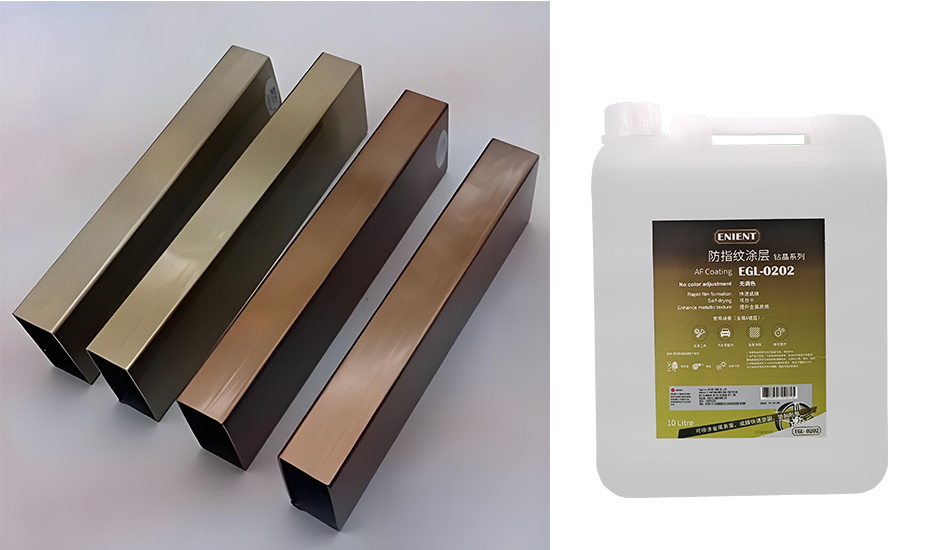 例如ENIENT EGL0202這種涂層的特點(diǎn)是其透明度極高,不會(huì)改變不銹鋼的自然光澤。它通過(guò)利用納米顆粒的“疏水”特性,減少油脂和汗水的附著,從而降低指紋和其他污漬的明顯程度。這種改進(jìn)使得它在高端柜體和裝飾面板中大受歡迎。
