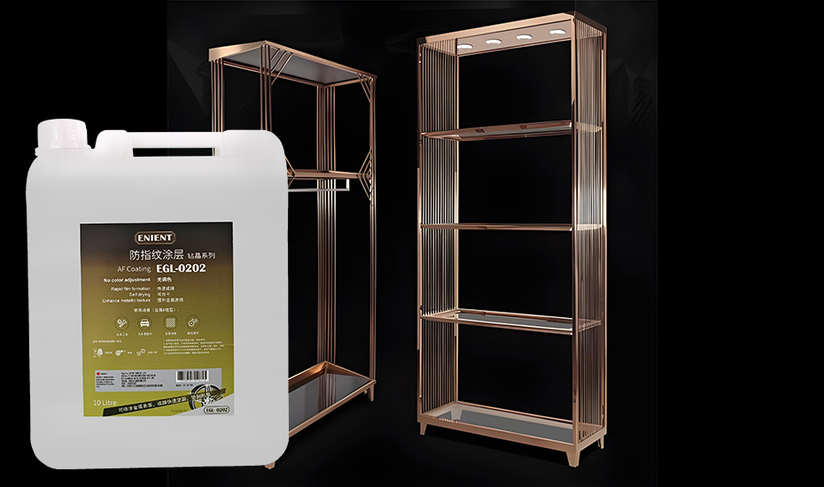 4.油性納米防指紋油:將油性技術(shù)和納米技術(shù)結(jié)合,從而得到一種操作方便又極透明細(xì)膩的涂層,并且擁有油性產(chǎn)品的絕佳附著力,同時(shí)降低了成本。以ENIENT EGL0202單液免烤型防指紋油為例,噴上自干即可達(dá)到比烘烤更強(qiáng)的性能,并且透明度高,做出來(lái)的不銹鋼制品十分高檔。