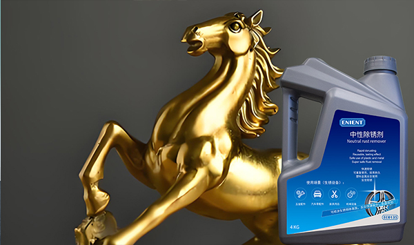 相較于酸性除銹劑,堿性除銹劑的腐蝕性較低。常見的堿性除銹劑包括氫氧化鈉、碳酸鈉等,它們通過皂化反應(yīng)或絡(luò)合反應(yīng)與銹蝕物質(zhì)結(jié)合,達到去除銹跡的目的。堿性除銹劑的優(yōu)點在于對黃銅的侵蝕較小,適合用于表面較為精細的黃銅制品。但堿性除銹劑的除銹速度相對較慢,且對于頑固的銹跡效果有限,因此在處理較為嚴(yán)重的銹蝕時可能需要多次使用。