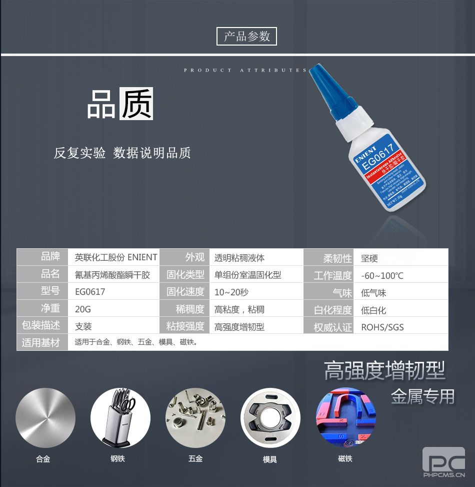 ENIENT EG0617快干膠15~25秒固化金屬專用合金鋼鐵五金模具磁鐵透明20G