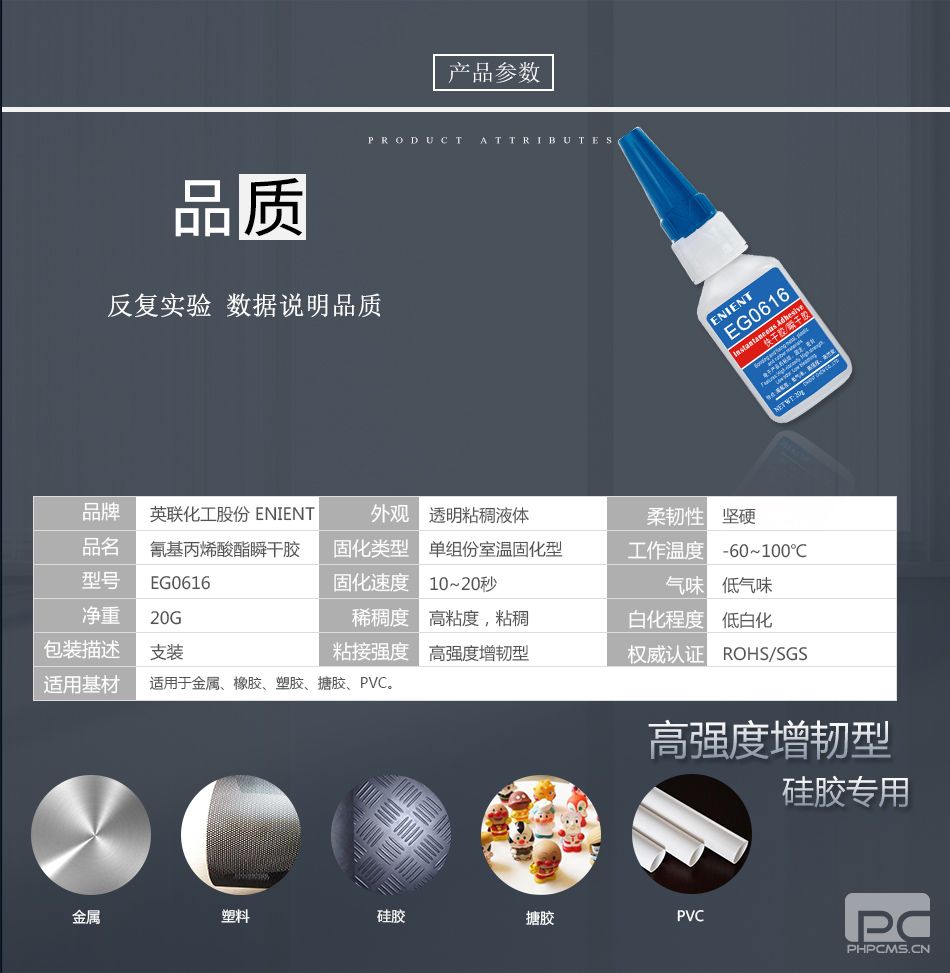 ENIENT EG0616快干膠15~25秒固化金屬專用硅膠橡膠PVC塑料金屬透明20G