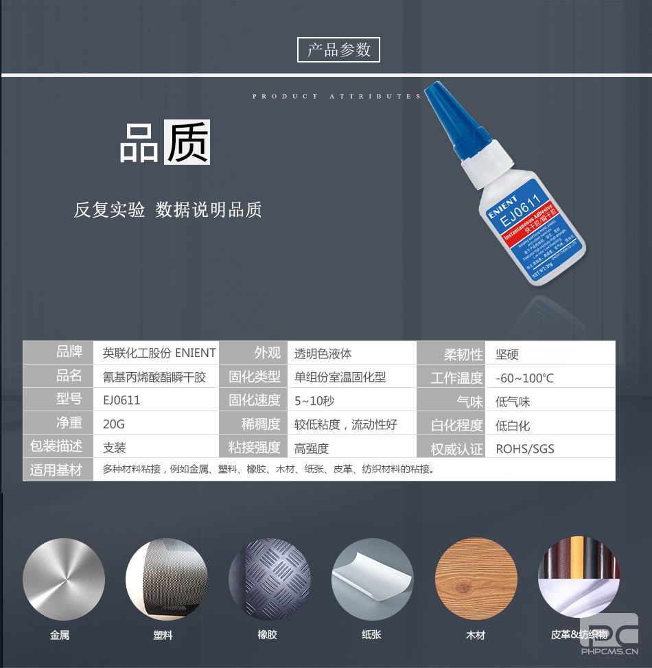 ENIENT EJ0611快干膠金屬塑料橡膠紙張皮革紡織材料5~10秒固化無白化透明20G