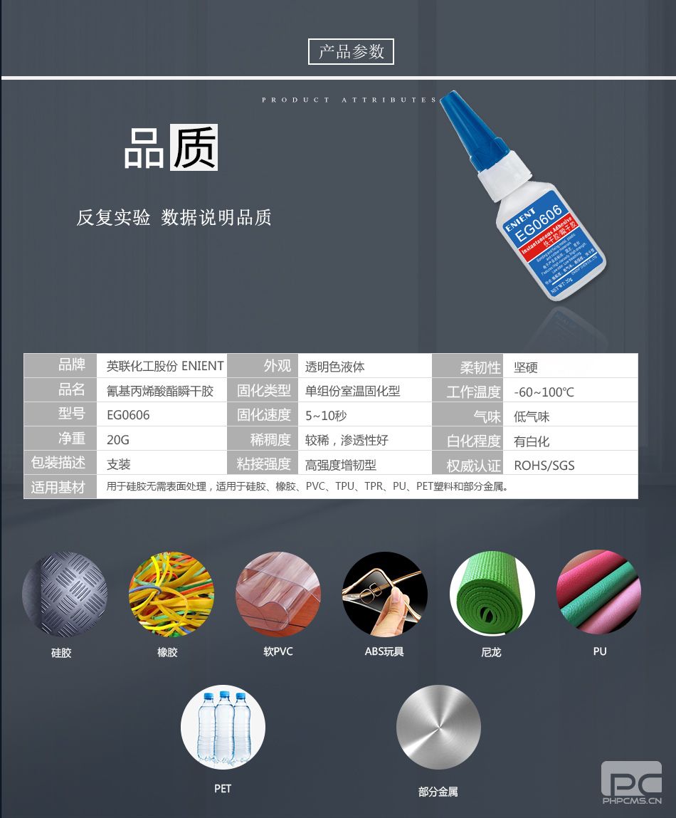 ENIENT EG0606快干膠硅膠橡膠PVC/TPU/TPR/PU/PET塑料和金屬粘接5~10秒超快干高強度低白化透明20G