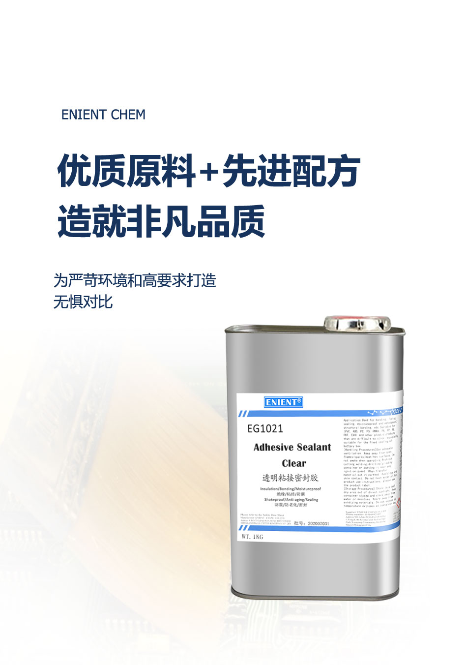 ENIENT EG1023 粘接密封膠用途廣泛,在﹣60℃~100℃溫度下性能穩(wěn)定。