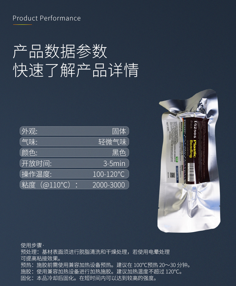 · 預(yù)熱:施膠前需使用兼容加熱設(shè)備預(yù)熱。建議在100℃預(yù)熱20~30分鐘。
